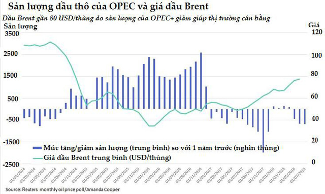 Giá dầu dự báo sẽ vững trong năm nay và năm tới vì sản lượng của Tổ chức các nước Xuất khẩu Dầu mỏ (OPEC) và Mỹ tăng nhưng cũng chỉ đủ đáp ứng nhu cầu mạnh lên ở châu Á và giúp bù đắp phần sụt giảm nguồn cung từ Iran và một số nước khác.