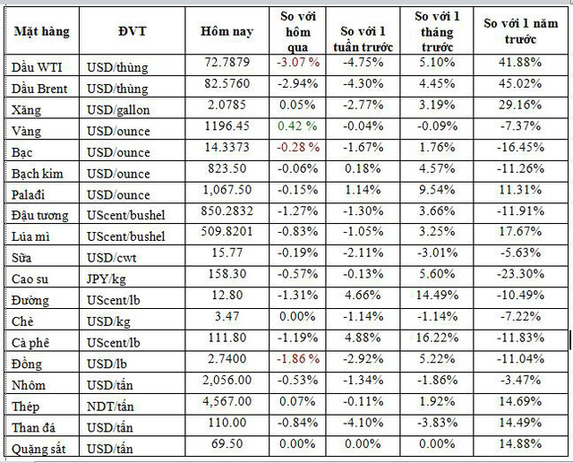 Giá một số mặt hàng chủ chốt lúc 7h sáng ngày 11/10